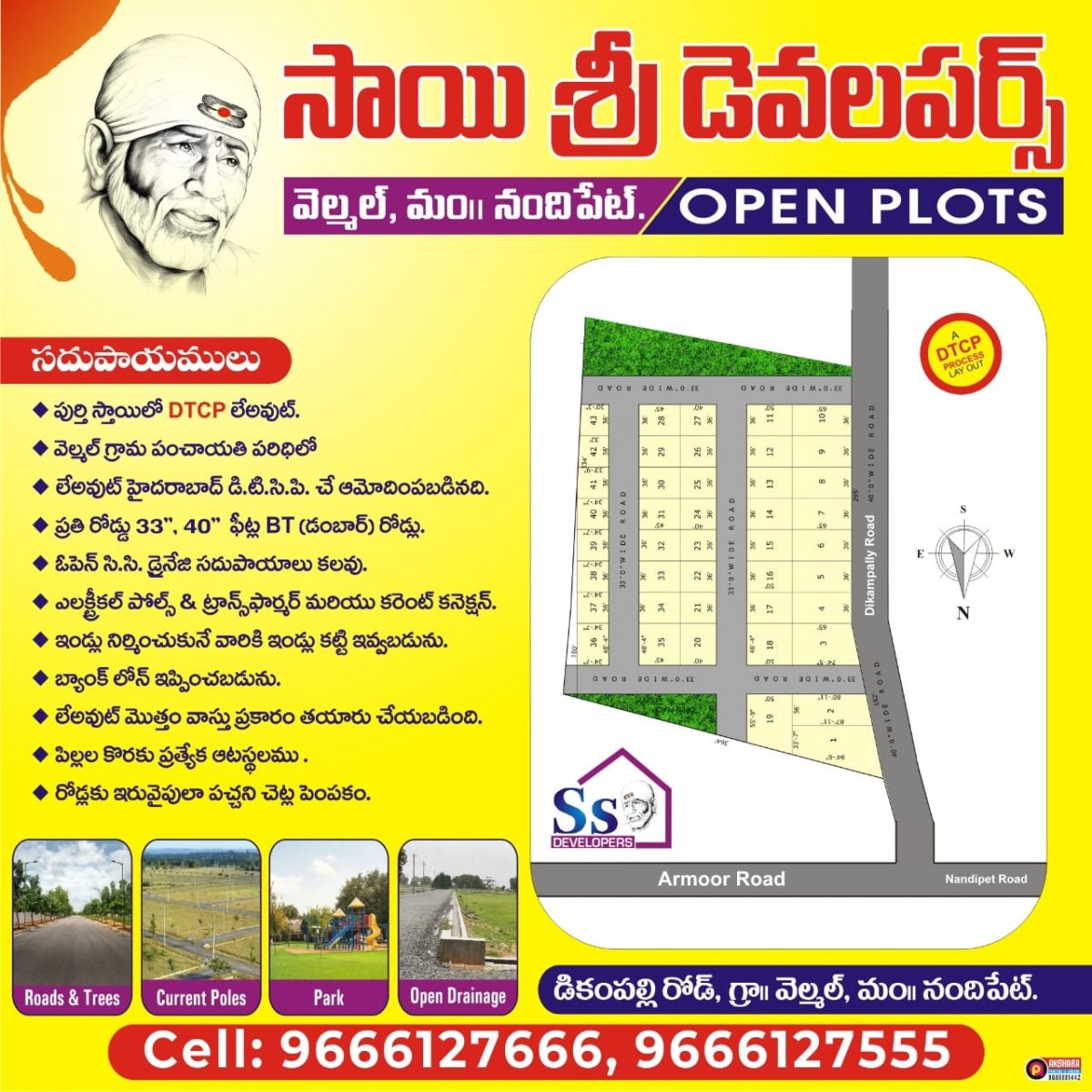 Dtcp approved layout plots for sale at velmal,Nandipet,Nizamabad